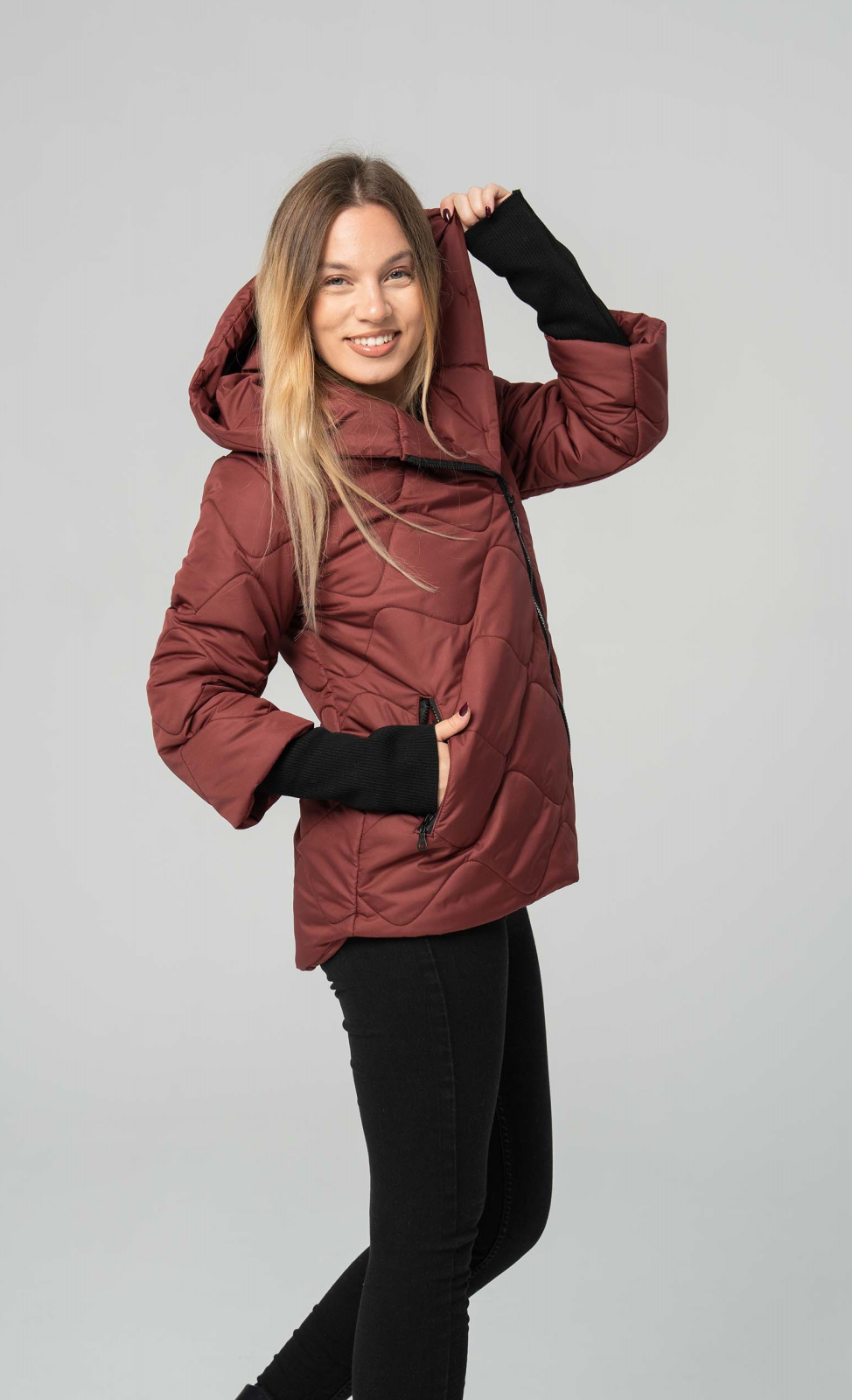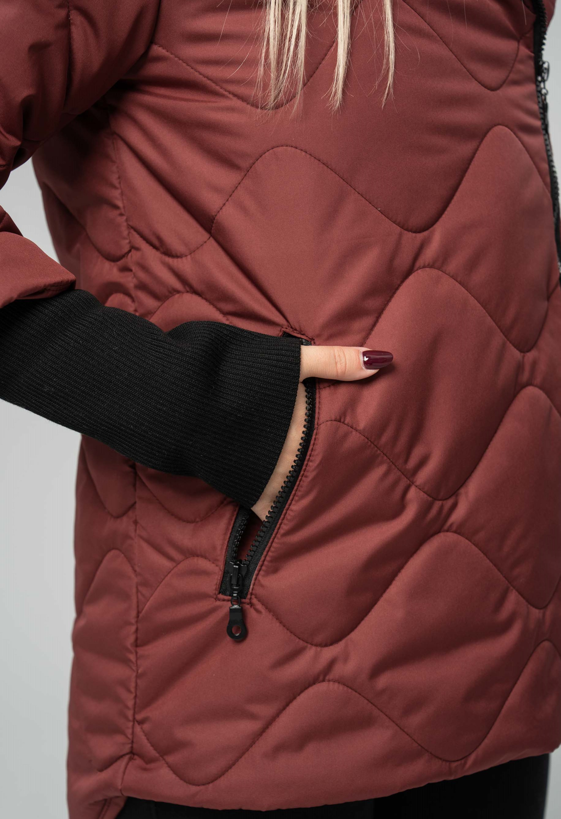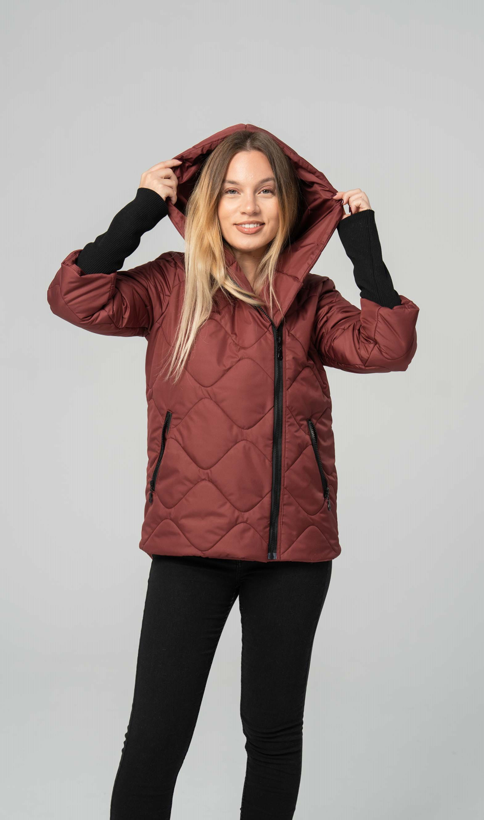Un must-have pentru zilele răcoroase, o geacă matlasată, grena, este perfectă pentru a adăuga o notă elegantă și vibrantă garderobei tale. Cu un design atemporal, cu fermoar lateral, asimetric, și croială lejeră, de tip bomber, modelul oferă un look tineresc și dinamic. Gluga integrată și manșetele elastice, de culoare neagră, sunt detalii esențiale care te protejează de frig, în timp ce matlasajul asigură o izolație termică optimă. Poart-o cu blugi, pantaloni negri sau fuste, și bucură-te de un confort absolut și un stil impecabil.