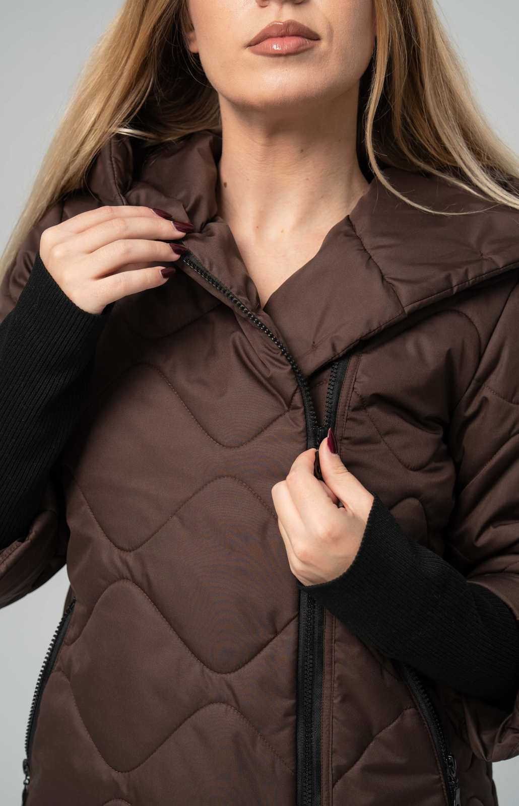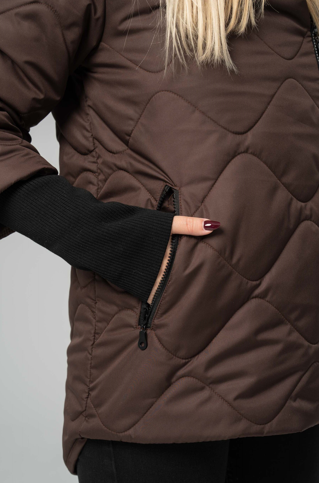 Adaugă o notă de rafinament discret garderobei tale cu o geacă matlasată, într-o nuanță caldă de maro. Croiala modernă și fermoarul lateral, asimetric, transformă această piesă vestimentară într-o declarație de stil urban. Gluga integrată oferă un plus de confort și protecție în zilele reci, iar manșetele elastice, de culoare neagră, completează perfect designul.