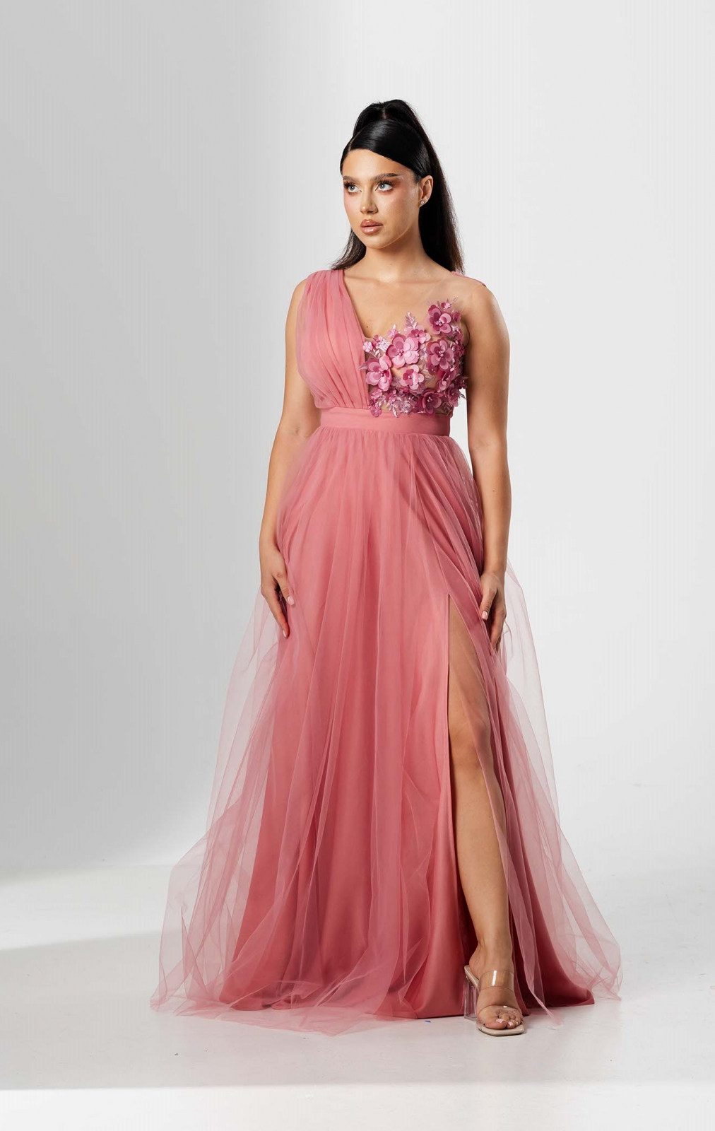 Rochie de seara lunga , cu croiala in A, cu un design deosebit care combina feminitatea cu eleganta. Bustul decorat cu aplicatii florale 3D ,fusta cu despicatura pe picior,talia evidentiata printr-un cordon ,fac din aceasta rochie alegerea perfecta pentru evenimente memorabile.